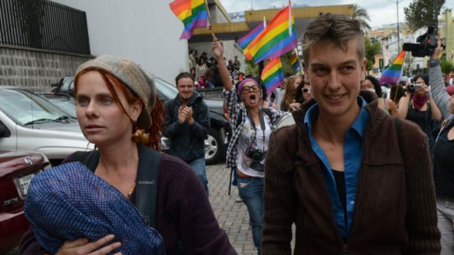 Edu León del diario El Telégrafo encontró valiosos testimonios de madres lesbianas que quieren consolidar sus familias, pero no tienen aún cabida legal en el país. Las leyes no permiten la adopción ni el reconocimiento de las parejas del mismo sexo como familia.