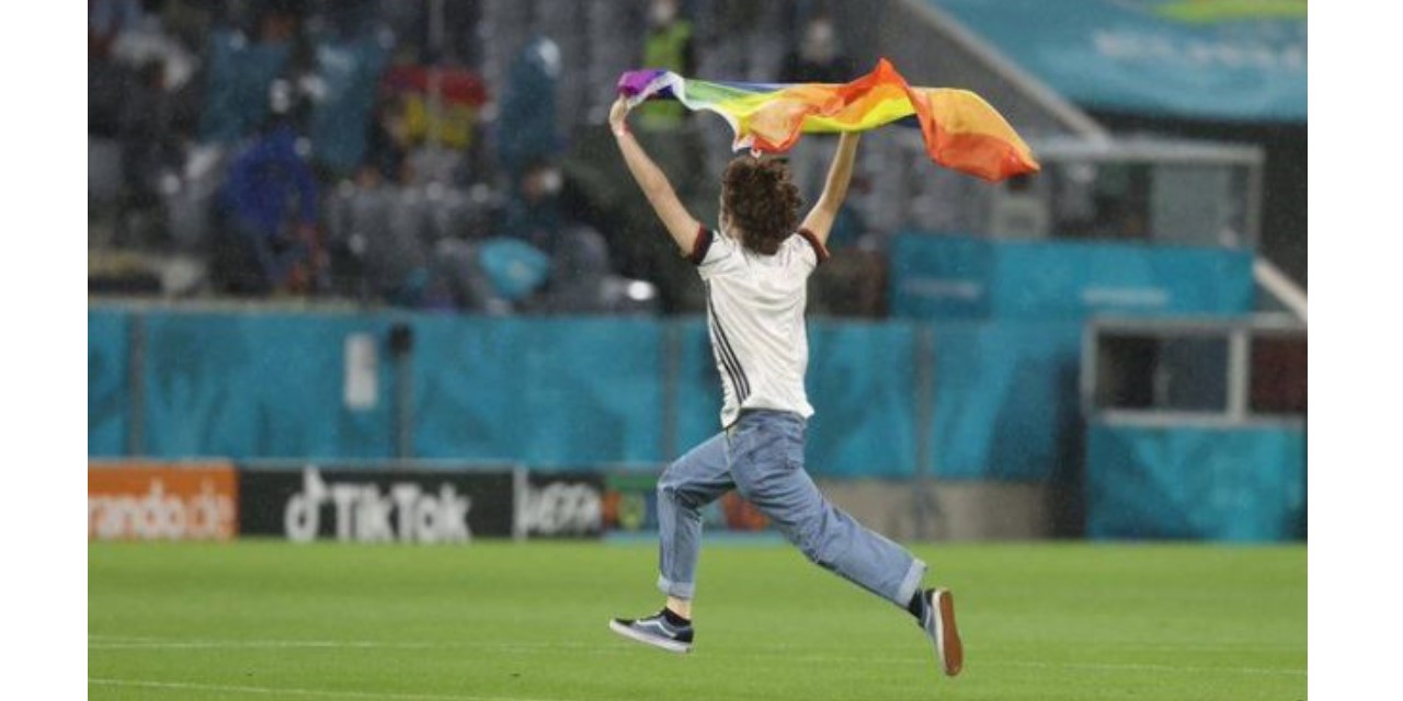 Es por eso que muchos han aplaudido el valor del joven que se metió a la cancha durante el partido de Alemania contra Hungría, mientras se entonaba el himno nacional de Hungría y cruzó enfrente de los jugadores con la bandera LGBT+.