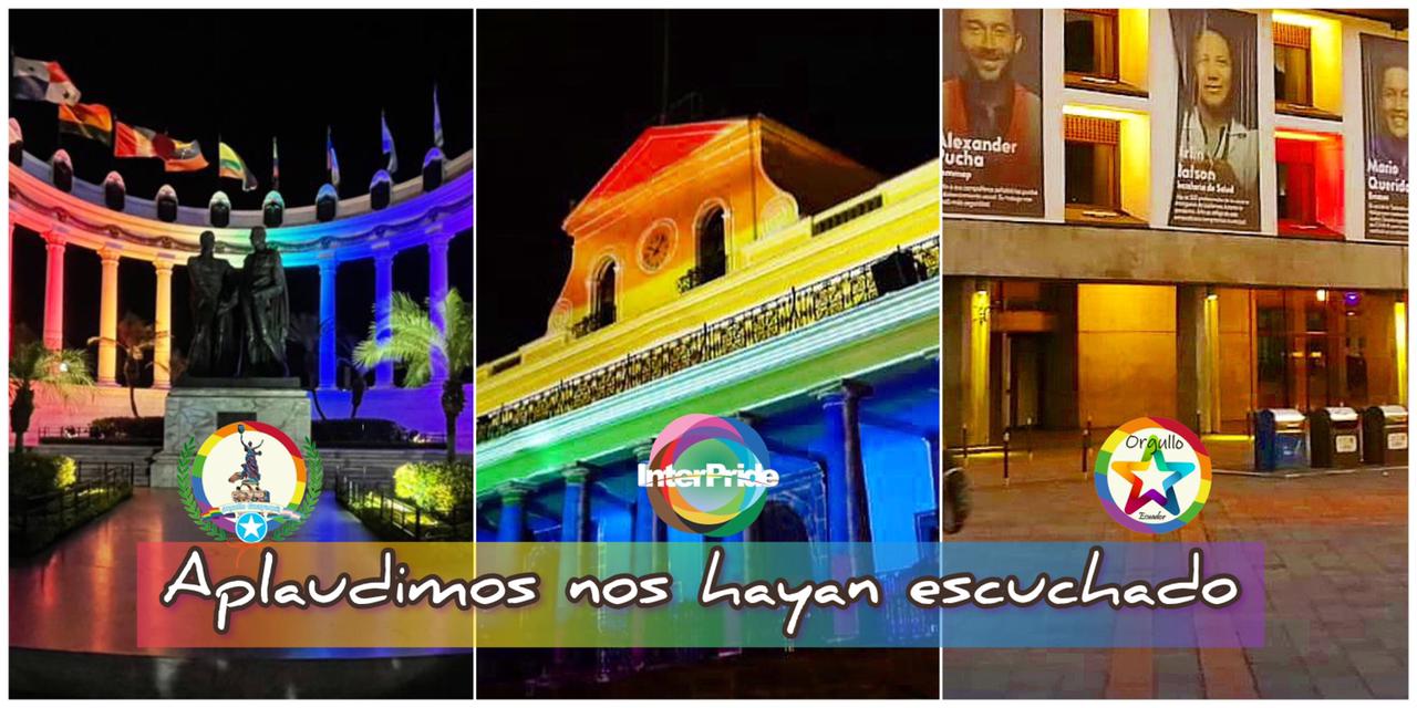 Aplaudimos al Municipio de Quito, Guayaquil y Presidencia de la República del Ecuador por atender a nuestro pedido de iluminar lugares emblemáticos con los colores LGBTIQ
