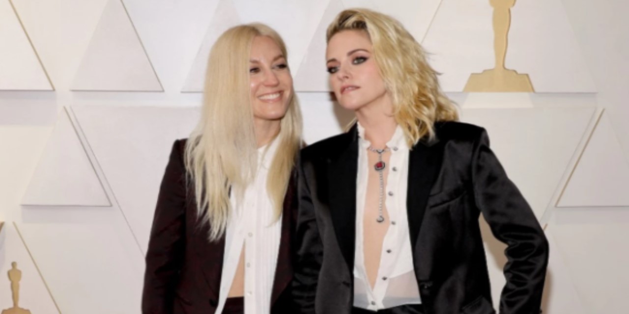 - Una de nuestras actrices lesbianas preferidas, Kristen Stewart (en esta ocasión nominada por su papel en Spencer), decidió saltarse el código de vestimenta que decía: faldas largas para las mujeres. Pero ya sabéis que Kristen es una rebelde. Nos encantó verla en la alfombra roja de la mano de su prometida, la guionista Dylan Meyer. Tras dos años de relación, anunciaron su compromiso el pasado mes de noviembre. Las futuras esposas deslumbraron con su besazo.