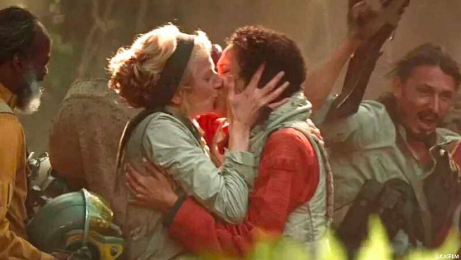 nueve películas, pero Star Wars finalmente obtuvo un beso entre personas del mismo sexo en The Rise of Skywalker cuando dos luchadoras de la Resistencia, Larma D’Acy y Wrobie Tyce, se besaron después de ganar una batalla.Esta película nos trae el primer personaje lésbico de Disney. Una policía que menciona a su esposa una sola vez.