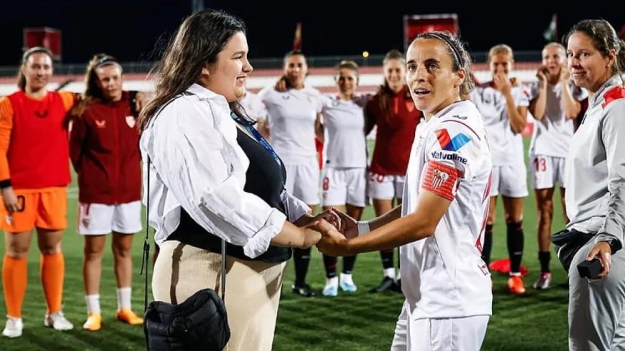 Amparo Delgado le ha pedido matrimonio a su novia en su último partido con el Sevilla. 15 años en la plantilla, desde Provincial a Primera División, que se acababan en ese partido (su contrato con el Club duraba hasta esta temporada).