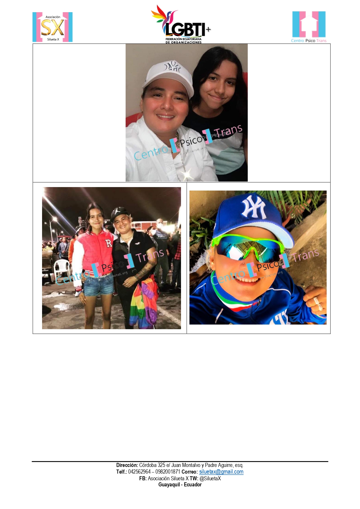 El Centro Psico Trans de Quito de la Asociación Silueta X, miembros de la Plataforma Nacional Revolución Trans (que cubre con sus colectivas lo rural, comunitario y las periferias) y la Federación ecuatoriana de Organizaciones LGBT+, ponen en conocimiento público el siguiente hecho.